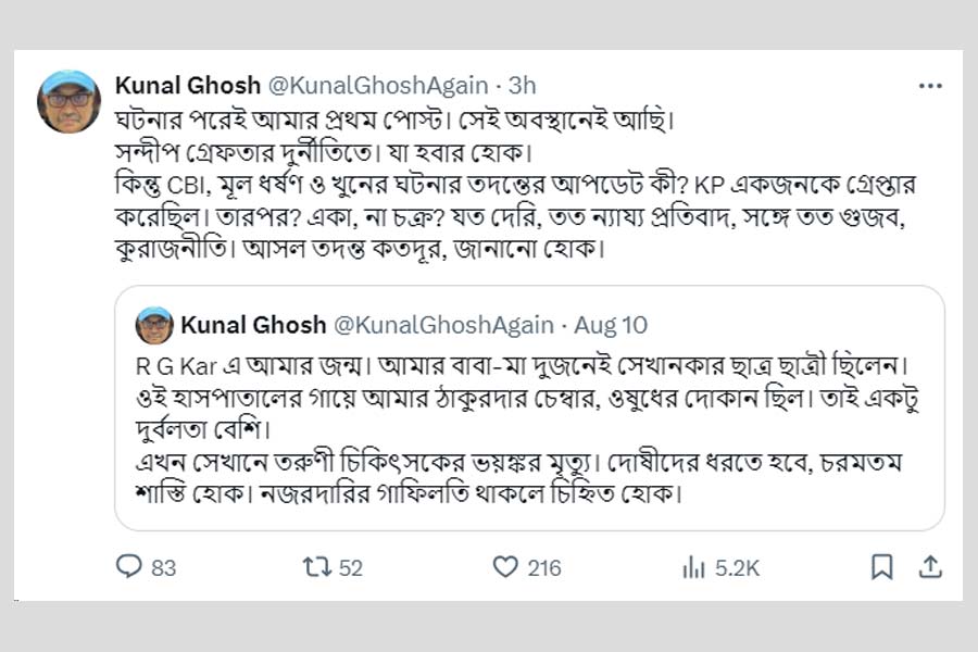 That trend has continued even after the Central Bureau of Investigation arrested Sandip Ghosh, the controversial former principal of RG Kar Medical College and Hospital, on Monday evening in a corruption case.