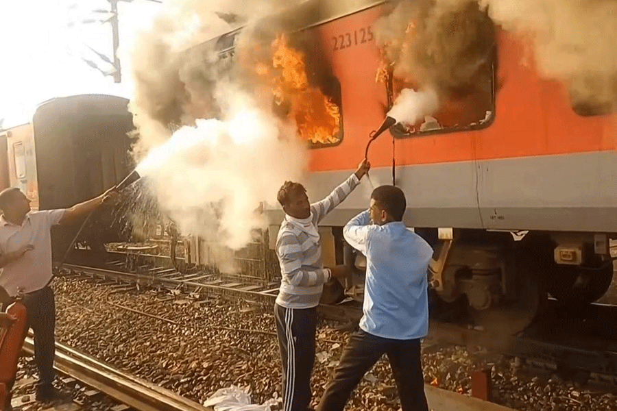 The fire soon engulfed the coach (G-19). Two other coaches also faced minor impact. The three coaches were separated from the rest of the train and fire tenders were immediately called in, the GRP official said.