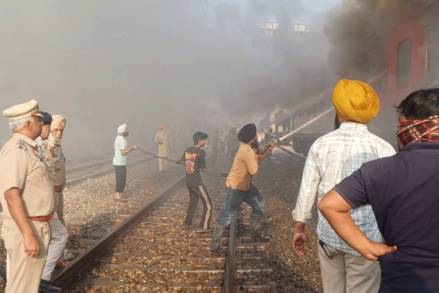 The fire broke out around 7:30 AM when the train (number 12204) was coming from Amritsar.