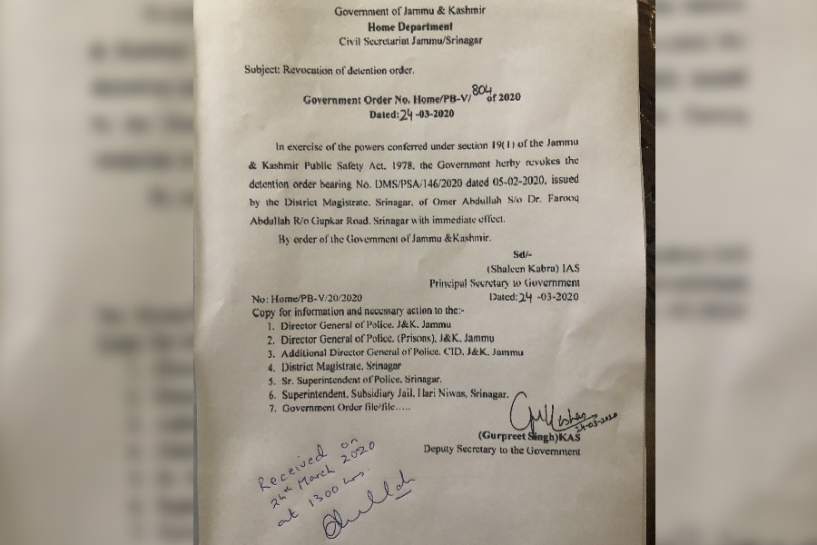 In the evening, a staffer at the Srinagar district magistrate’s office, accompanied by a police officer, turned up with a detention order for Abdullah.