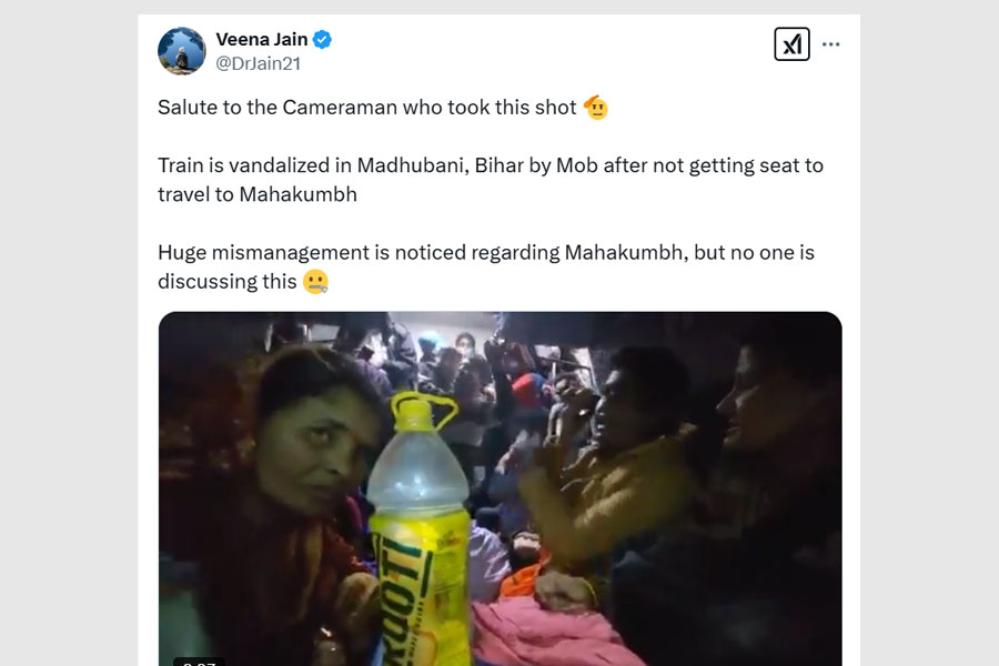 One user shared a video from Madhubani, Bihar, where a mob vandalised a train after passengers failed to secure seats to travel to the Mahakumbh. The video shows a shattered compartment window, with stone pelting causing further damage. The post reads: “Salute to the cameraman who took this shot. Train is vandalized in Madhubani, Bihar by a mob after not getting a seat to travel to Mahakumbh. Huge mismanagement is noticed regarding Mahakumbh, but no one is discussing this”.