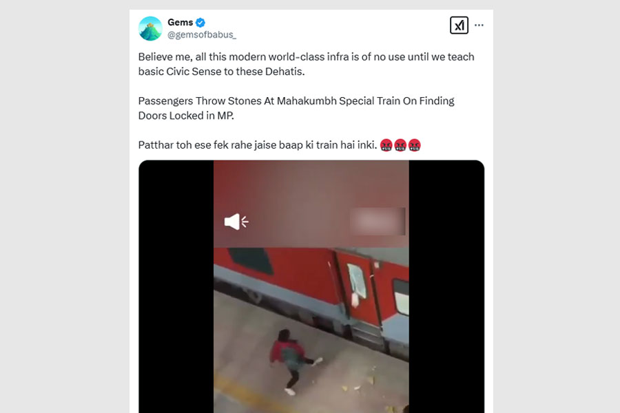 A video from Madhya Pradesh showed passengers throwing stones at a Mahakumbh special train after finding the doors were locked. Some passengers had allegedly locked the doors from the inside to prevent overcrowding, leading to anger among those stranded outside. “Believe me, all this modern world-class infra is of no use until we teach basic civic sense to these dehatis. Passengers throw stones at Mahakumbh Special Train on finding doors locked in MP. Patthar toh ese fek rahe jaise baap ki train hai inki,” the user wrote.