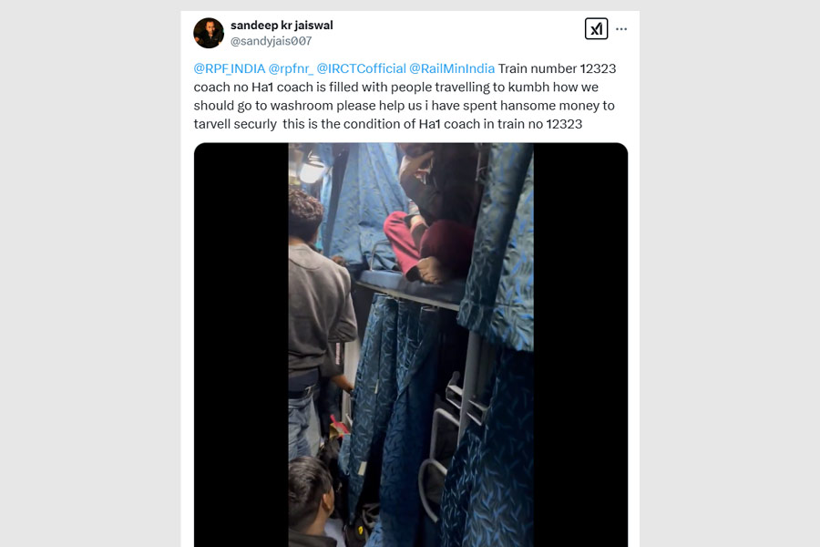 Even reserved coaches have not been spared from the rush. One traveller, who had booked an AC coach in Train No. 12323, shared their experience, stating that the compartment was so overcrowded that even reaching the washroom was impossible. “Train number 12323, coach no. HA1 is filled with people traveling to Kumbh. How are we supposed to go to the washroom? Please help us. I have spent a handsome amount to travel securely, but this is the condition,” the user wrote, highlighting that even walking inside the train had become a struggle.