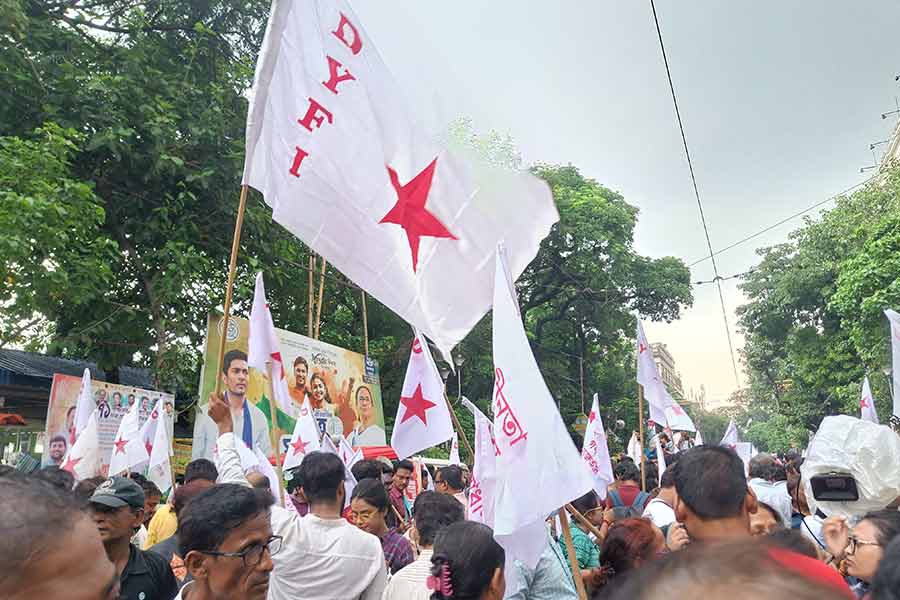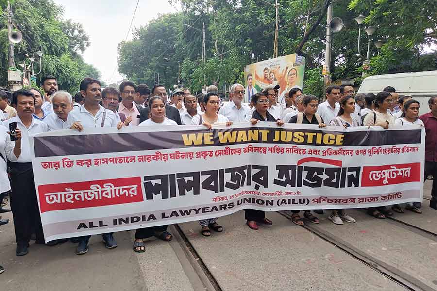 The Bongo Jyotish Samaj contingent, of which Dey and Shastri were part, walked on Saturday for the one cause that has united doctors and homemakers, YouTubers and sound recordists, teachers and students across Calcutta and Bengal – justice for the young doctor brutalised and killed in the heart of the state capital inside a government hospital while on duty.