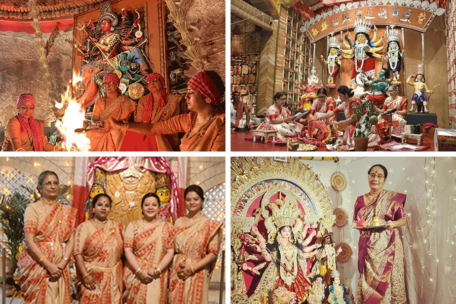Here is a quick look at six of the many women-led Durga Pujas of Calcutta this year.