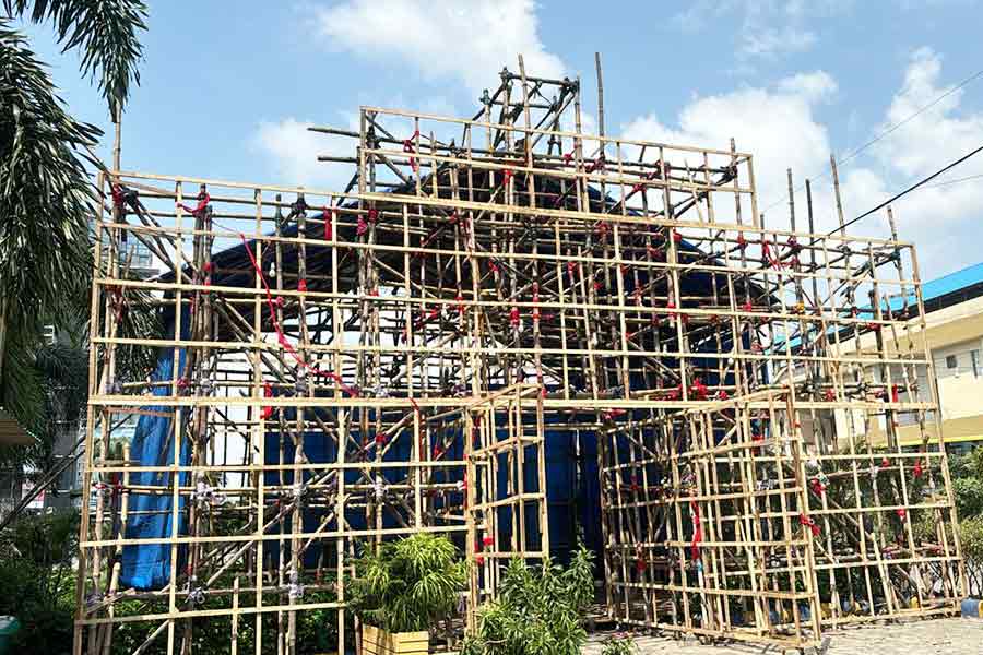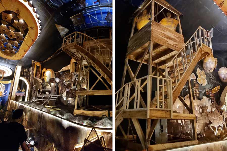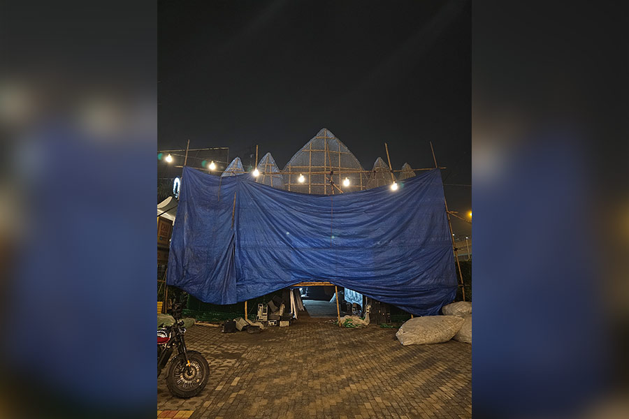“The mandap of our puja has been made by women and the theme has also been chosen by women. The full work of our pandal has been done by women. We are a team of 20 to 25 women,” Jhuma Biswas, assistant secretary, Golf Green Sarod Utsav Committee, told The Telegraph Online.