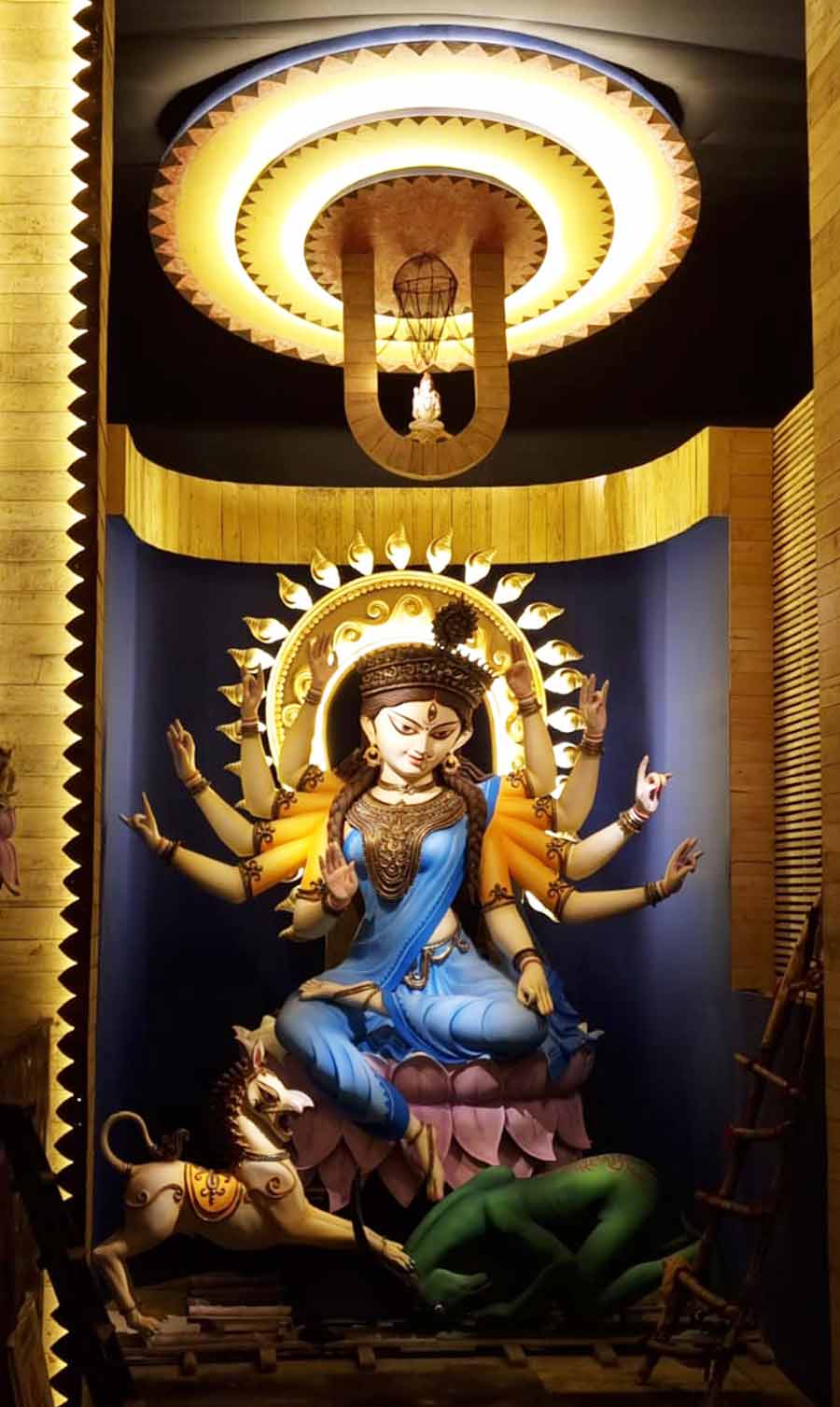 The theme is Durbar Durgotsab Ei Ek Jug (An era of the Durbar Durga Puja).