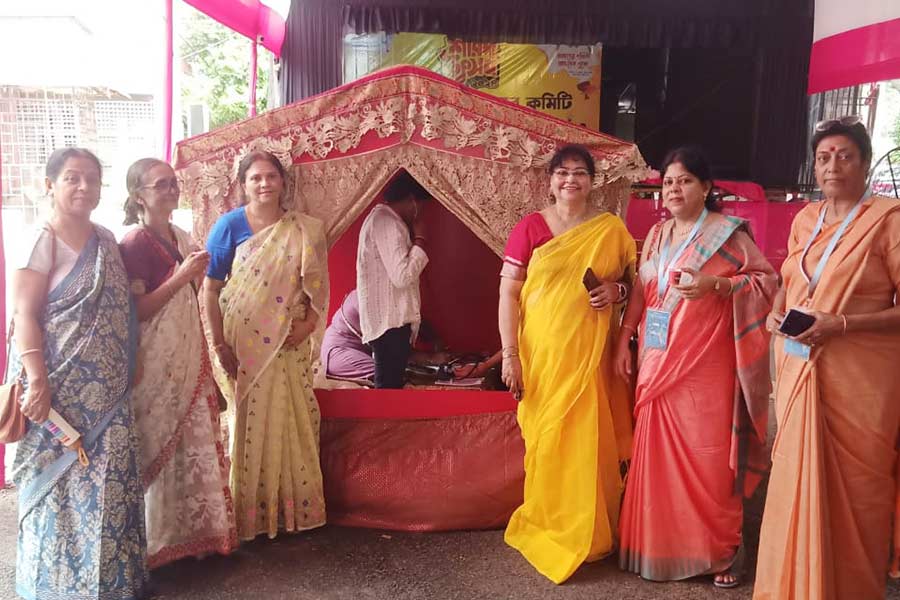 The Hindustan Park Sarbojanin Durgotsab Committee, a women-led group, has chosen the theme ‘Kalpo Ritur Golpogatha’ (Imagination of Season) for their pandal.