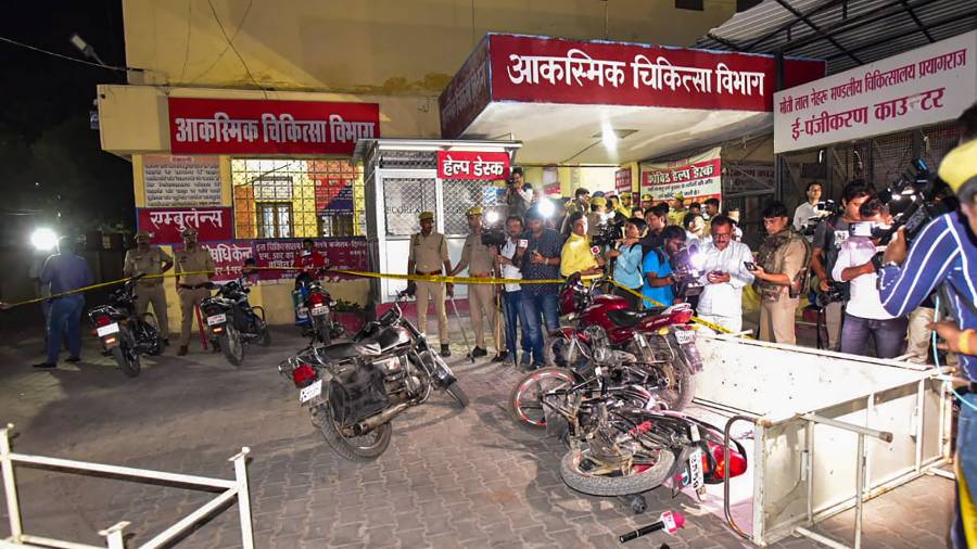 The names of at least two of them already figure in the records of police stations in the state. But for nothing as audacious as the almost point-blank shooting of the two brothers as they were being escorted into a Prayagraj hospital Saturday night for a medical check-up, while the cameras rolled.