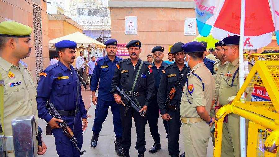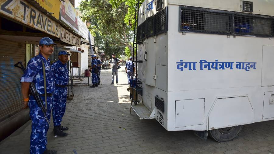 Tight security arrangements following the killing of gangster-turned politician Atiq and his Ashraf by three assailants, in Varanasi.