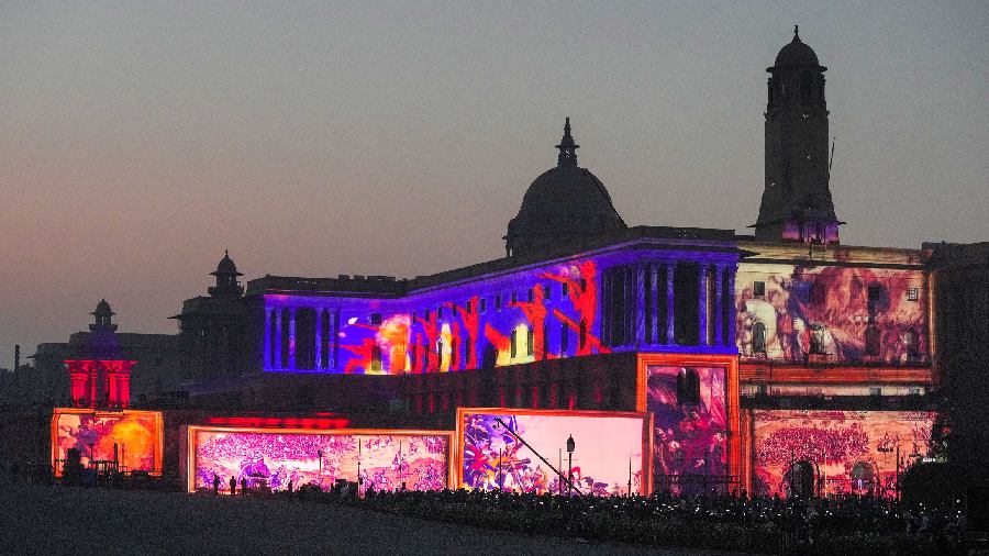 For the first time, a 3 dimmenssional anamorphic projection will be done on the facade of North Block and South Block during the grand event at Vijay Chowk.