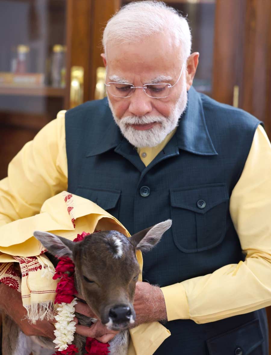 “A new member at 7, Lok Kalyan Marg!” PM Modi wrote on his X (formerly Twitter) handle, as he posted pictures of him with a brown calf which he named ‘Deepjyoti’ (light of the lamp).