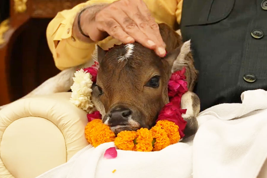 “It is said in our scriptures - ‘Gaav: Sarvasukha Prada:’ There has been the auspicious arrival of a new member in the prime minister’s residence’s family at Lok Kalyan Marg. In the prime minister’s residence, the beloved mother cow has given birth to a new calf, which has a symbol of light on its forehead. Hence, I have named it ‘Deepjyoti’.”