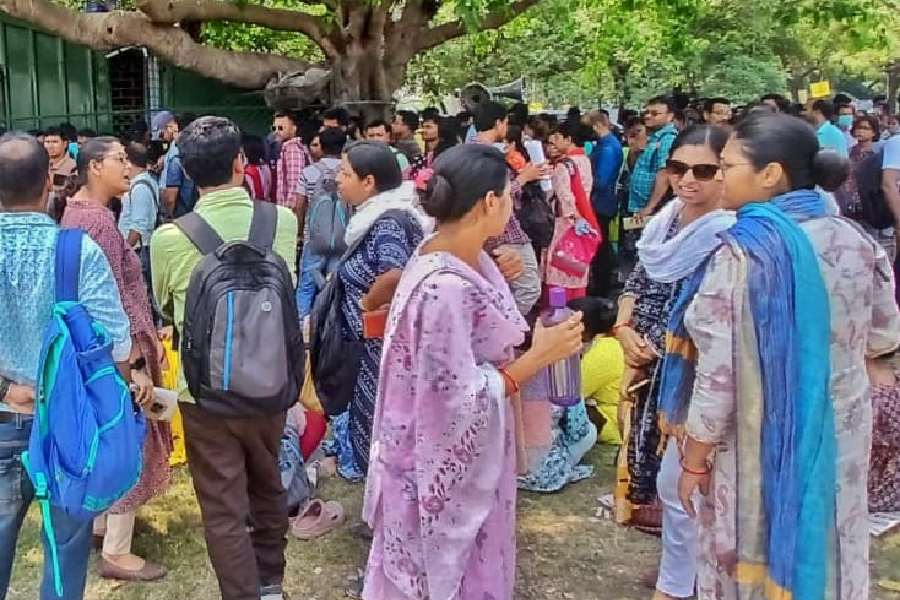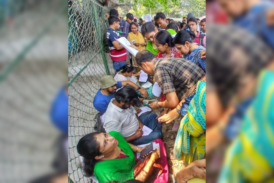 Hundreds gathered at the congregation. While some queued up for the formalities, the others waited for their turn while being seated in huddles. The screening process was categorised into districts and zones. The candidates were required to produce their admit cards along with the OMR sheets to prove their eligibility. Shibhashis claims to be one of the eligible one who cleared the SSC exam in 2016.