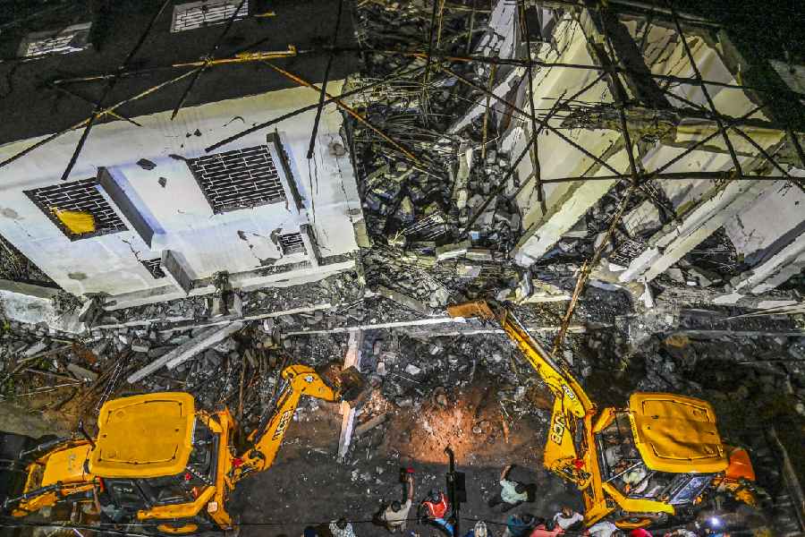 "Bhuvan Reddy, son of Muniraja Reddy under whose name the building is being constructed and the contractor Muniyappa who was building it have been taken into custody," a senior police official said.