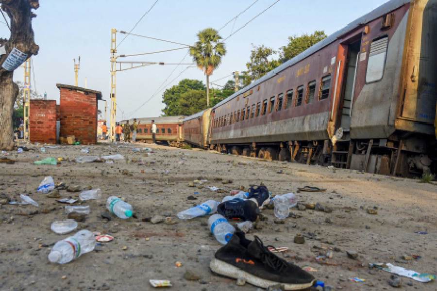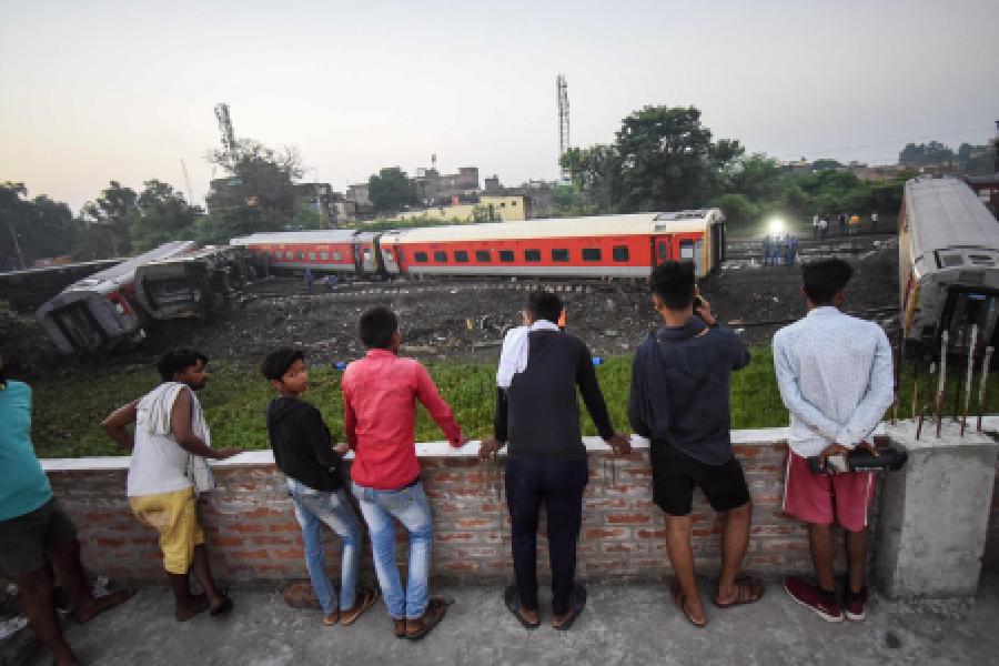 Derailed coaches of the Delhi-Kamakhya North East Express near Raghunathpur station in Buxar district.