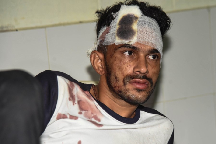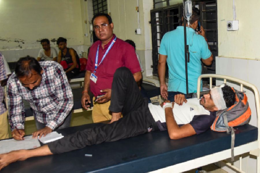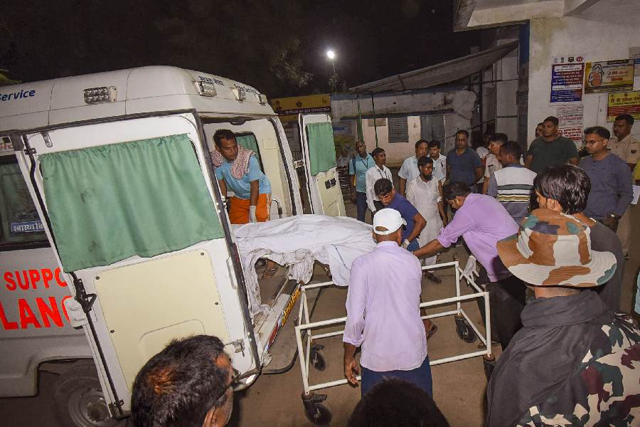 People and hospital staff carry a dead body after multiple coaches of the Delhi-Kamakhya North East Express derailed.