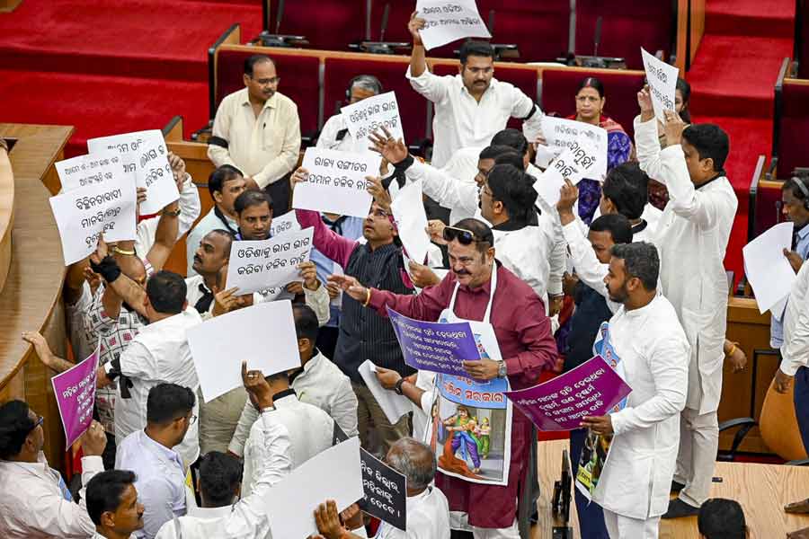 While the BJD members demanded a statement from Chief Minister Mohan Charan Majhi over Mishra's remark referring to the merger of erstwhile Koshala with Odisha in 1936 as a "historical mistake", Congress MLAs agitated over the alleged increase in the crimes against women in the state.