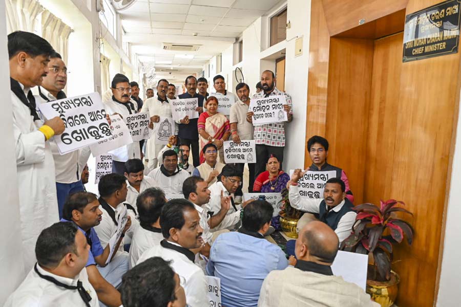 With the CM not coming to the House for the last two days, the BJD members launched a symbolic "search" for him on the assembly premises with a lantern. The BJD MLAs also staged a sit-in in front of the CM's chamber.