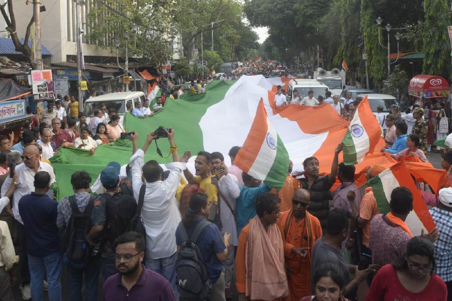 The West Bengal unit of the BJP on Friday took out a massive Tiranga Yatra through the heart of Kolkata to pay tribute to the valour and sacrifice of the Indian armed forces in the recently conducted Operation Sindoor.