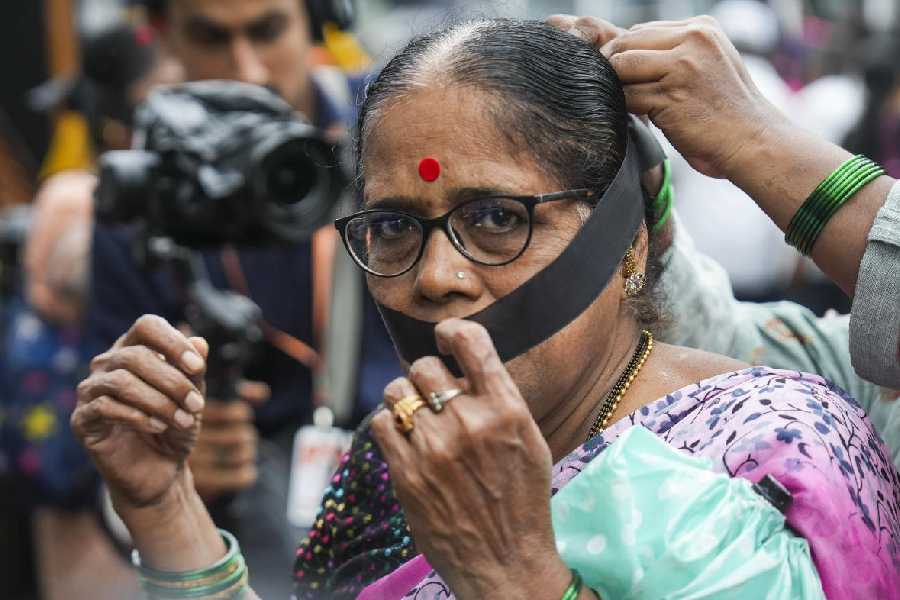 The image of a Shiv Sena (UBT) worker having a black band tied around her mouth captures the emotional core of the protests. This act of solidarity not only aligns with the broader MVA movement but also highlights the Shiv Sena (UBT)'s active participation in the statewide demonstrations.