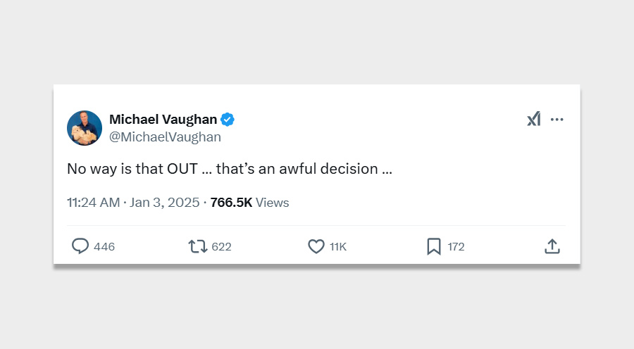 Former England captain Michael Vaughan expressed his shock at Joel Wilson's decision to give it out.