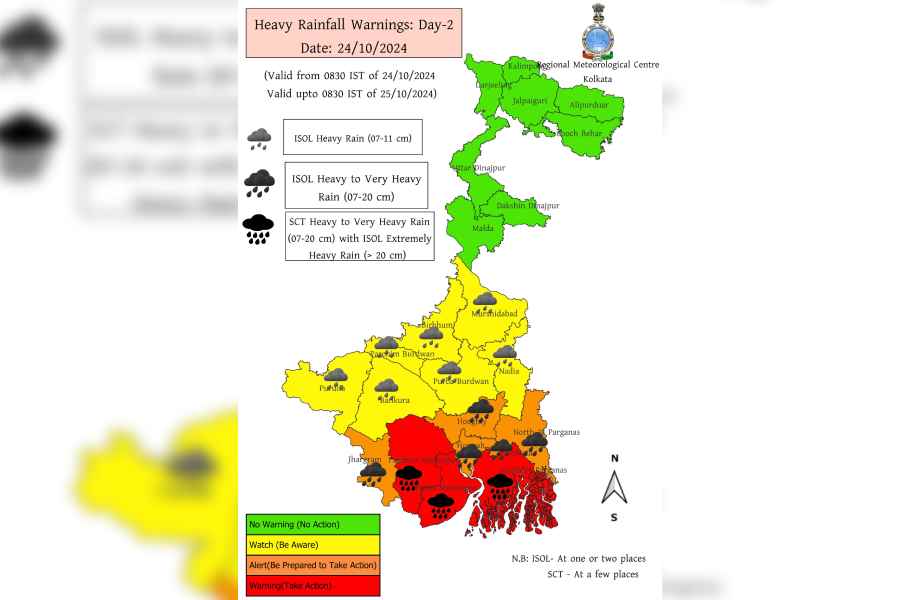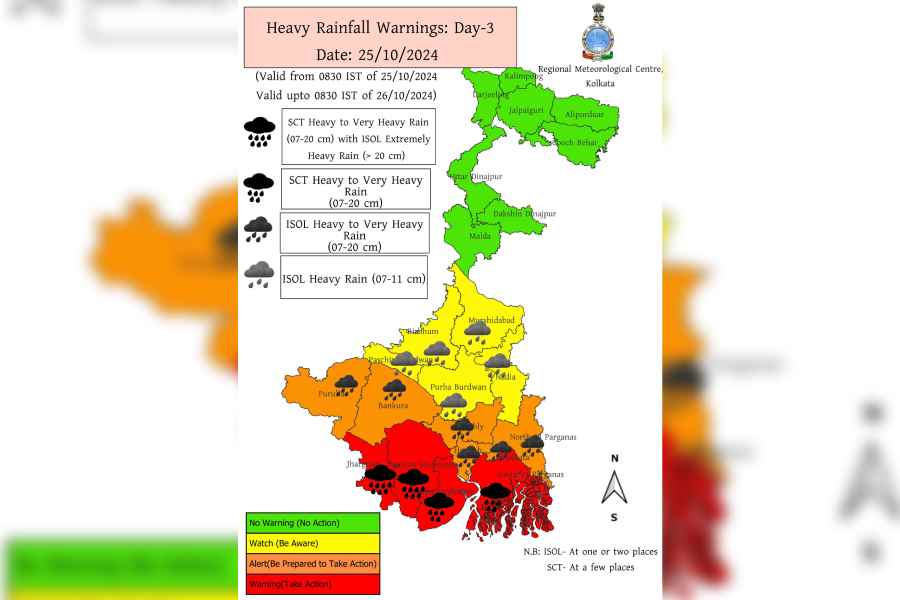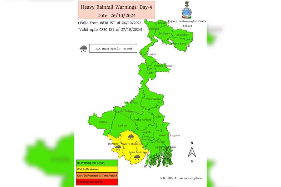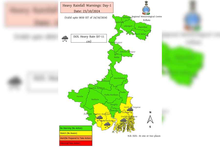 The IMD has also predicted heavy to very heavy rainfall in the districts of Kolkata, North and South 24 Parganas, Purba and Paschim Medinipur, Jhargram, Howrah, and Hooghly.