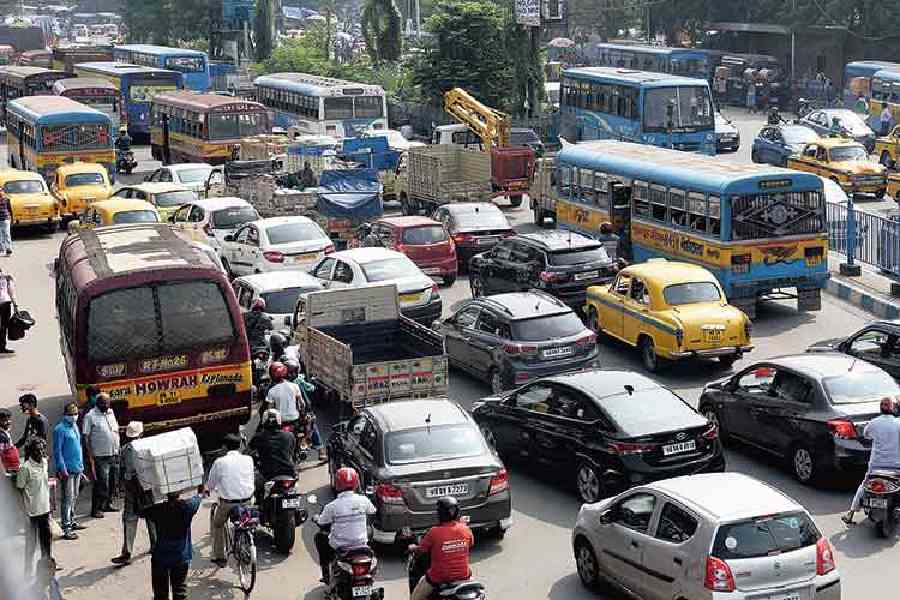 Calcutta’s traffic woes stem from multiple factors, according to the city police’s 2023 annual review bulletin. These include inadequate road infrastructure, unauthorised encroachment by hawkers, and an increasing number of slow-moving vehicles like hand-pulled rickshaws and e-rickshaws.