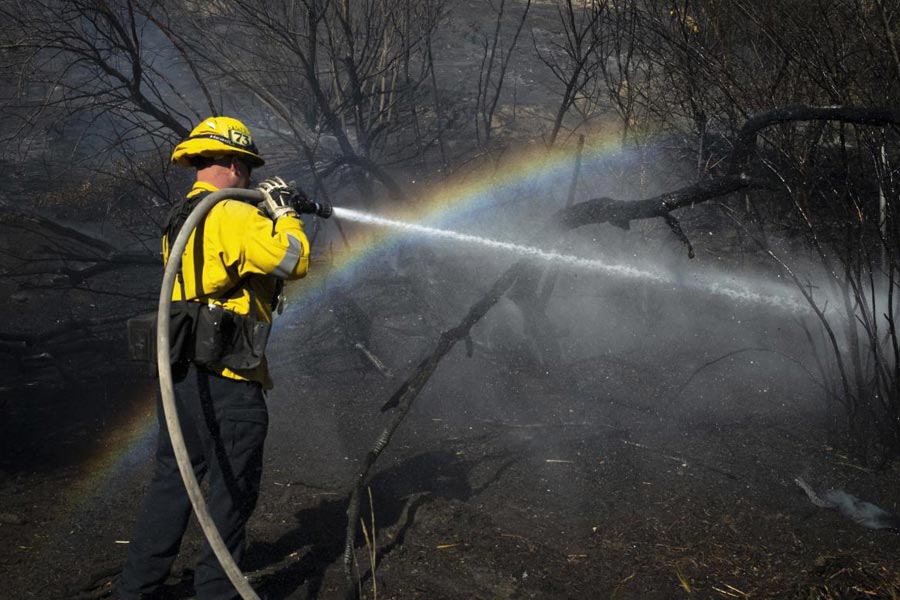 Arianna Buturovic kept a wary eye on distant smoke from the rescue shelter she runs outside Los Angeles for dogs at risk of being euthanised. Within hours, nearby mountains were ablaze and fire began encircling her.