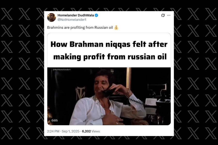 “This guy just said, ‘Only Brahmins are profiting from Russian oil.’ My God, Brahmin hate has officially gone global! Someone’s clearly feeding him the script on caste politics - blame Brahmins for every single crisis. Future is indeed worrying for Brahmins!” wrote one user.