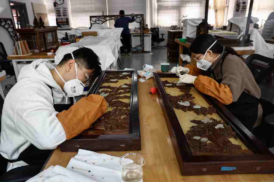 "The bottom layer had shifted and loosened to the point where it was in a pulverised state," said Sun Ou, who restores inlaid lacquer artworks at the Forbidden City, the former imperial palace in the heart of Beijing.
