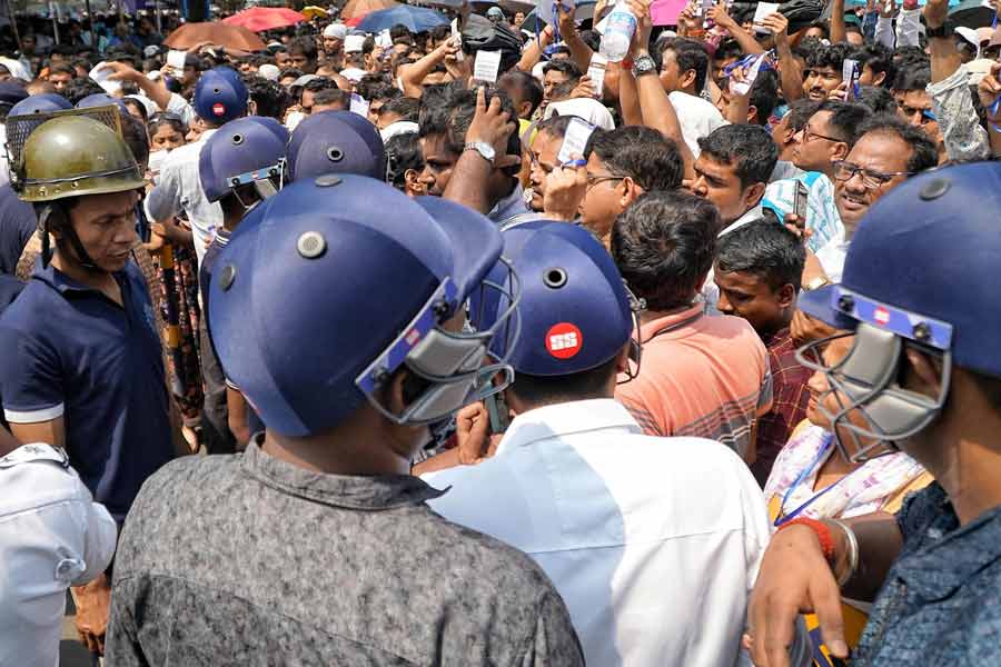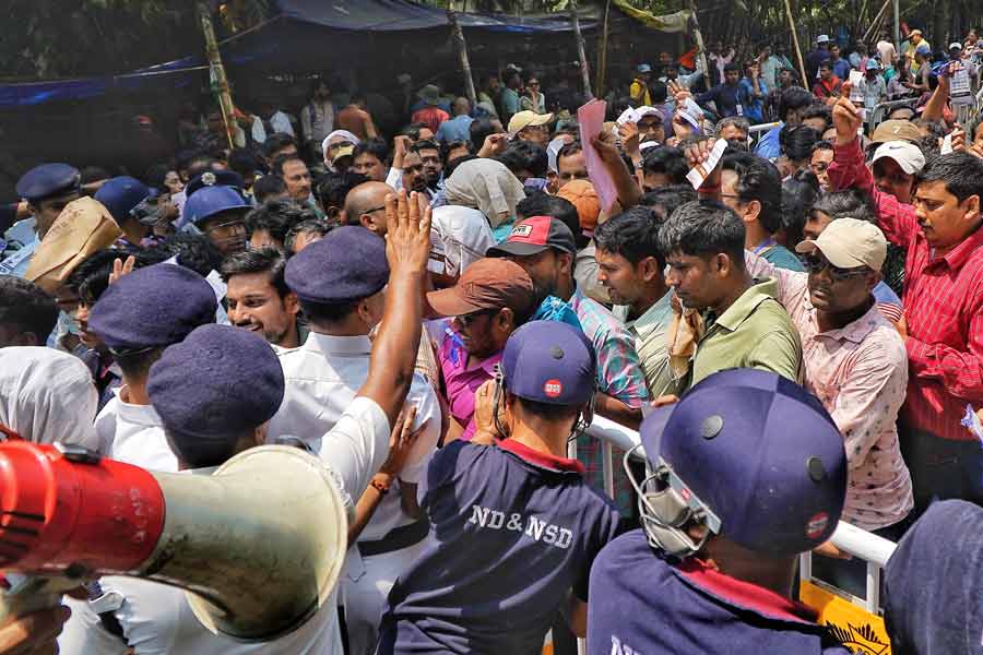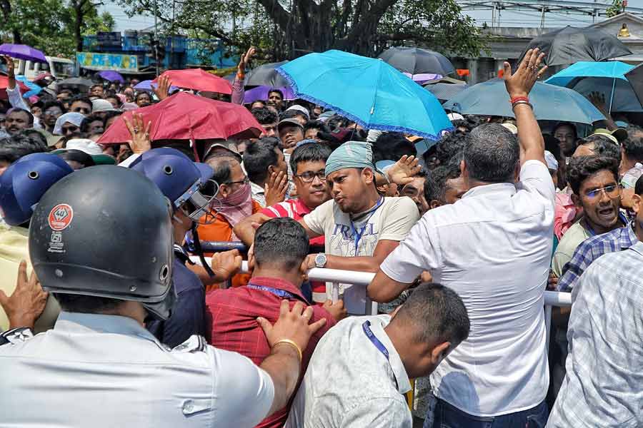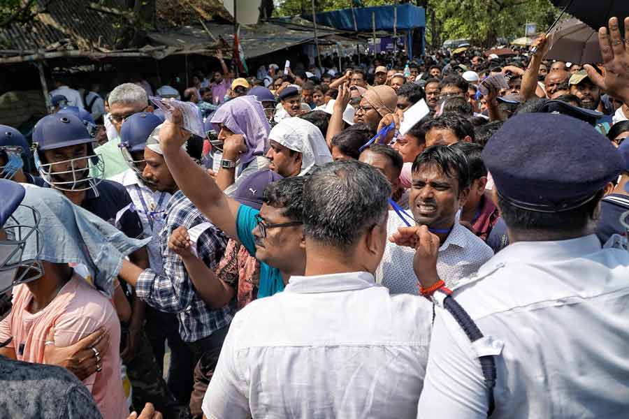Hours before the meeting between the job-seekers and Bengal chief minister Mamata Banerjee on Monday, chaotic scenes erupted outside the Netaji Indoor Stadium. The job-seekers who lost employment due to a Supreme Court verdict clashed with police personnel outside the venue.