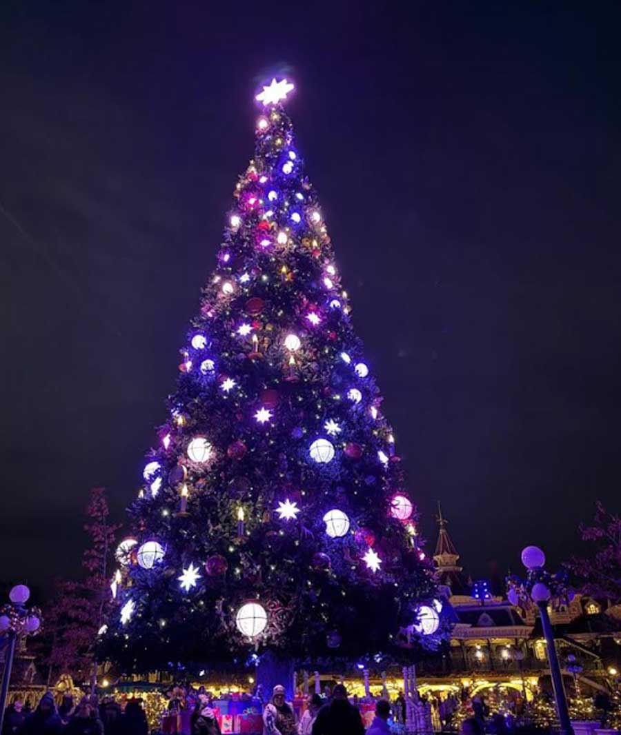 A giant Christmas tree in Disneyland adds charm to the holiday season in Paris