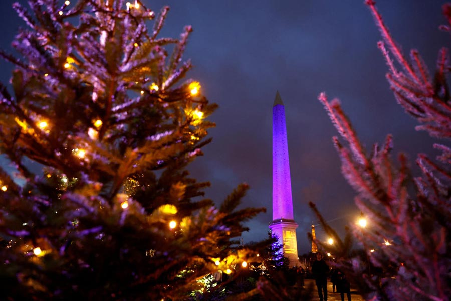 View of the Luxor Obelisk illuminated for Christmas season and decorated Christmas tree at the Place de la Concorde in Paris, France as of December 18, 2024 (Reuters)