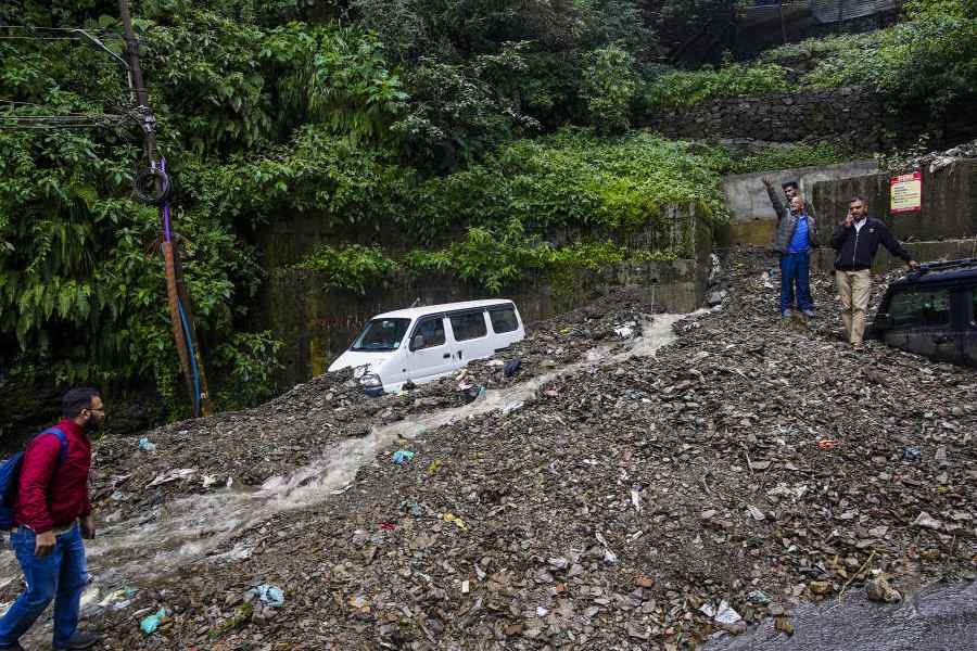 In Shimla district, road connectivity to Ganvi, Kiao, Koot, Kinfi, Kutru, Suru, Roopni, Khanidhar and Kheuncha — spanning three gram panchayats — has been cut off. Officials said sheds, houses and shops belonging to 26 people in the Ganvi area have been damaged, while a police post and an electricity department store have also been affected. Cars have been buried under debris at several locations.