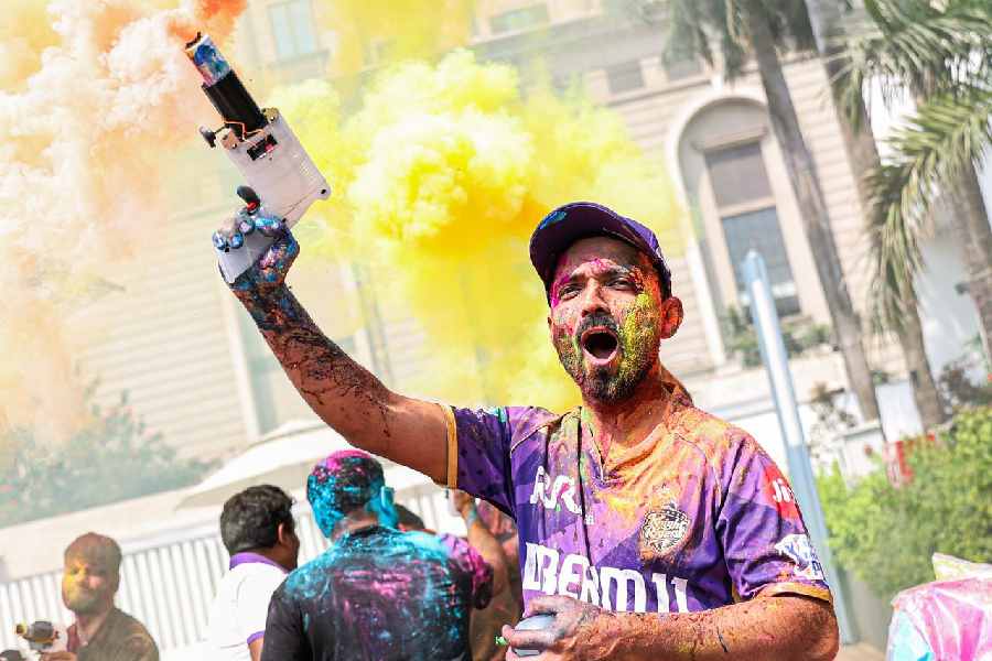 The Kolkata Knight Riders (KKR) embraced the festive fervour of Holi on Thursday, taking a brief respite from their pre-season training to celebrate the festival of colours at the team hotel.
