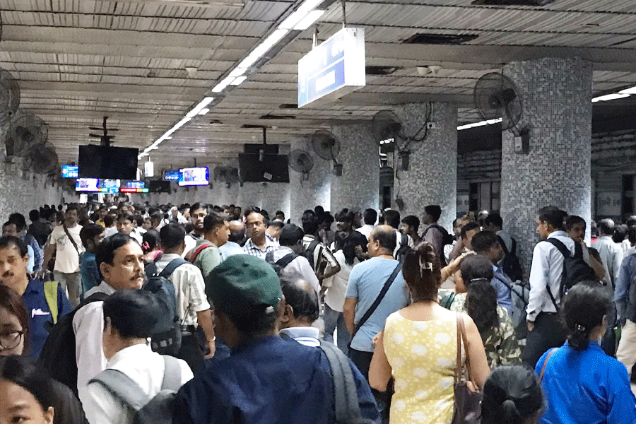 At the terminal Howrah Maidan railway station on the East-West route, serpentine queues are seen at ticket vending machines, while Metro employees manning the booking counters face a harrowing time, issuing paper tickets and recharging metro cards to the unending line of commuters.