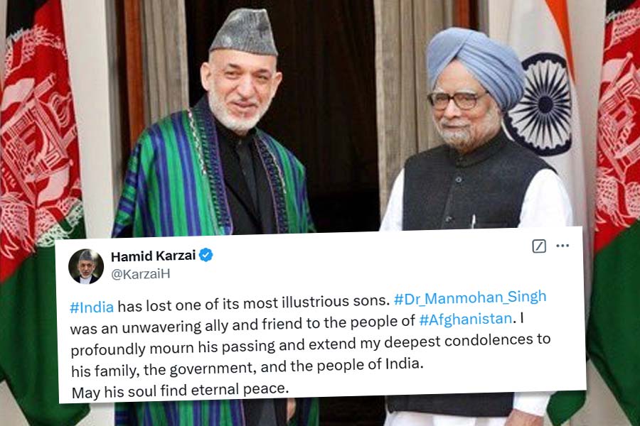 "India has lost one of its most illustrious sons. Dr Manmohan Singh was an unwavering ally and friend to the people of Afghanistan. I profoundly mourn his passing and extend my deepest condolences to his family, the government, and the people of India. May his soul find eternal peace," Karzai said.