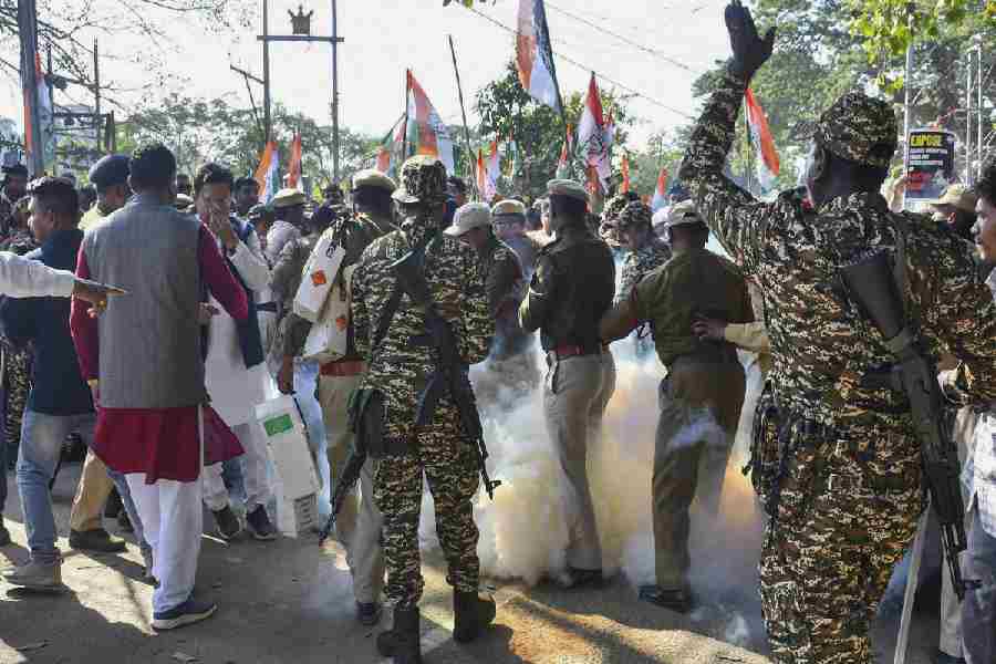 Police and Congress supporters were engaged in a scuffle, in which Assam Congress chief Bhupen Kumar Borah and former Rajya Sabha MP Ripun Bora fell on the ground, and were detained. Police personnel used tear gas to disperse protestors during the Congress's 'Raj Bhavan Chalo' protest, as part of its nationwide demonstration.