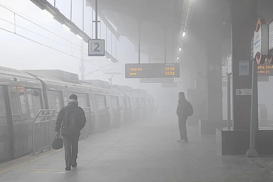 Dense fog engulfed parts of the national capital on Wednesday, marking the season’s first intense fog spell lasting three hours, which disrupted the schedules of over 100 flights and 26 trains due to low visibility.