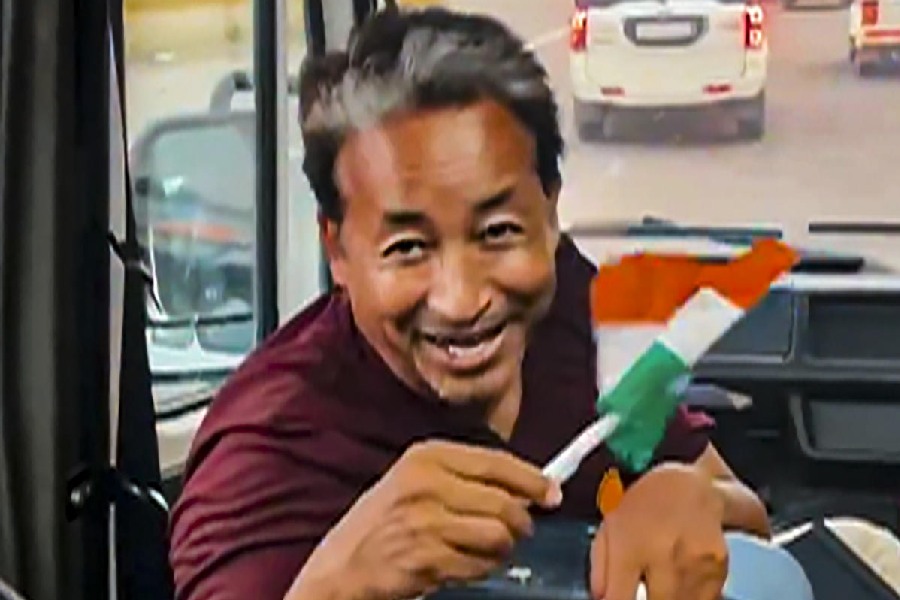 Climate activist Sonam Wangchuk and several others who were detained at the Delhi border while marching to the capital to demand Sixth Schedule status for Ladakh on Tuesday launched an indefinite fast at police stations where they have been kept.