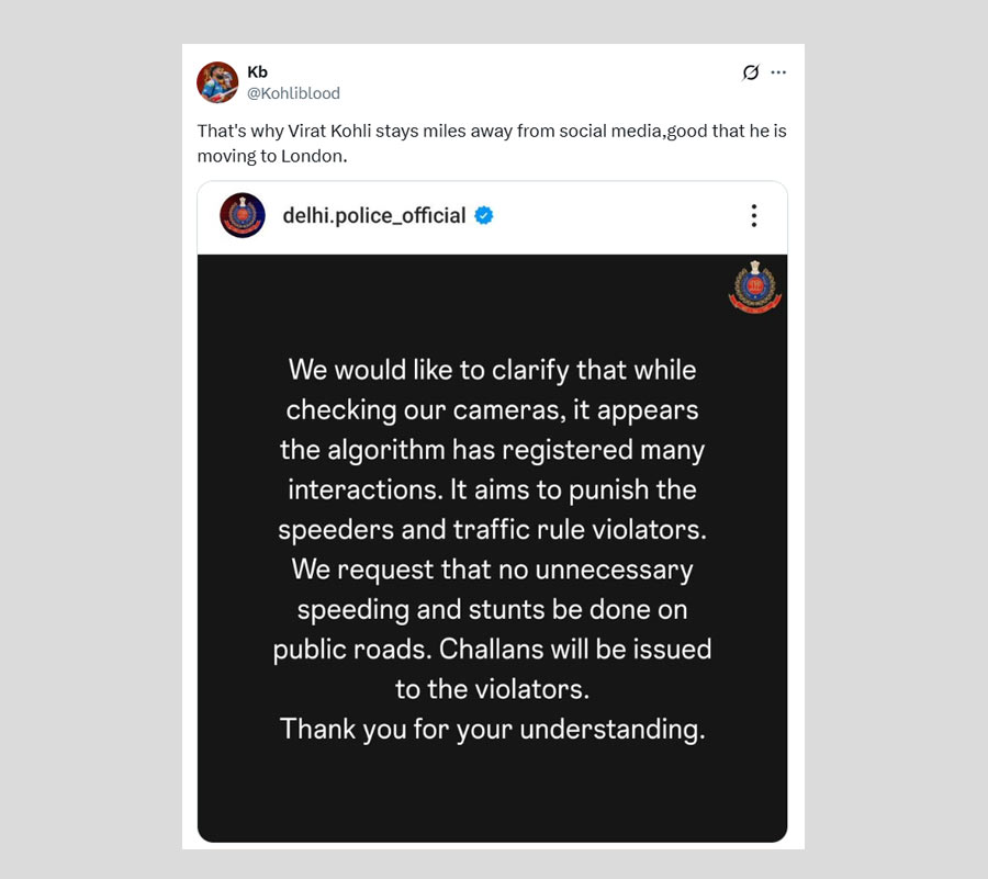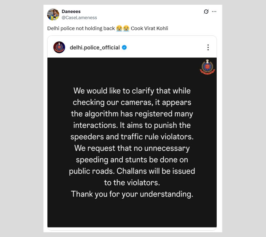 What was a routine message about traffic rules—“our cameras make no mistake” and that violators would be penalised—struck a familiar chord with fans, who were quick to draw comparisons between the PSA and Kohli’s Instagram story.