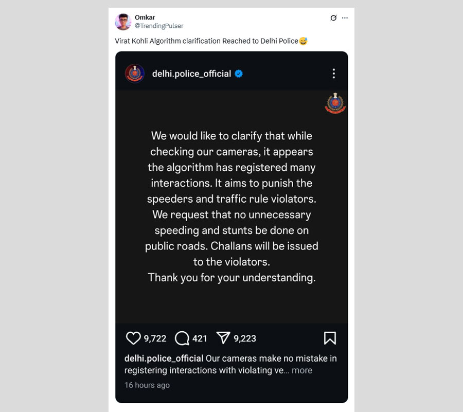The Delhi police social media team — posted a public service announcement (PSA) on Instagram to raise awareness about traffic violations.