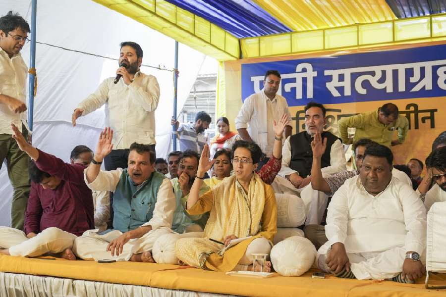 Delhi Water Minister and AAP leader Atishi Singh during the third day of her indefinite hunger strike over the ongoing water crisis in the national capital, in New Delhi, Sunday, June 23, 2024. "My hunger strike will continue till Delhi gets its rightful share of water," she said.