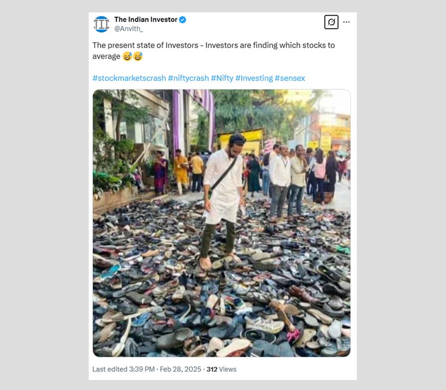 As the markets bled red, social media erupted with a flurry of memes — as investors once again found succour in gallows humour.