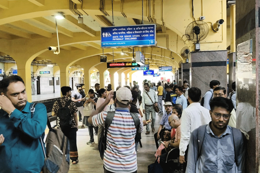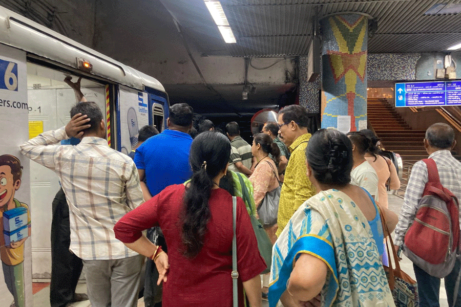 Announcements informed commuters that waterlogging between Rabindra Sarobar and Kalighat stations had led to a temporary suspension of metro services.