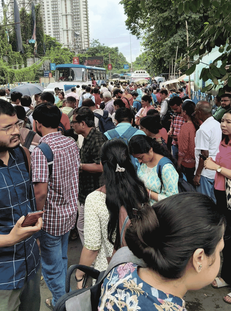 “I had boarded the train from Shahid Khudiram to reach my office, but suddenly we were asked to get down without any explanation. The platform was already packed, and the situation became chaotic,” said one commuter.