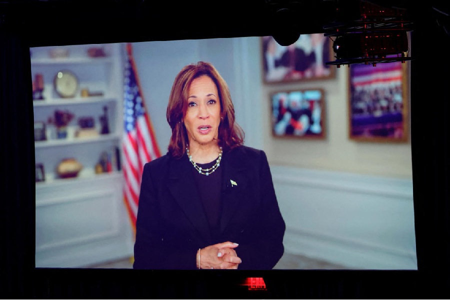 Harris addressed the crowd in a pre-recorded video, saying: "In the spirit of tonight's dinner, let us recommit to reaching across divides, to seek understanding and common ground."