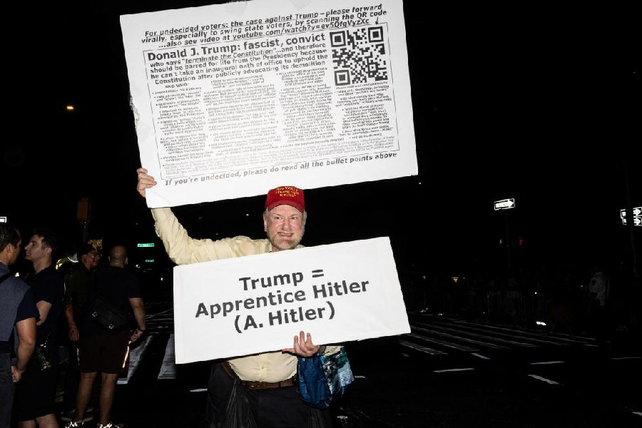 A person in Republican presidential nominee and former U.S. President Donald Trump costume takes part in the annual NYC Halloween Parade in Manhattan, New York City, U.S., October 31, 2024.
