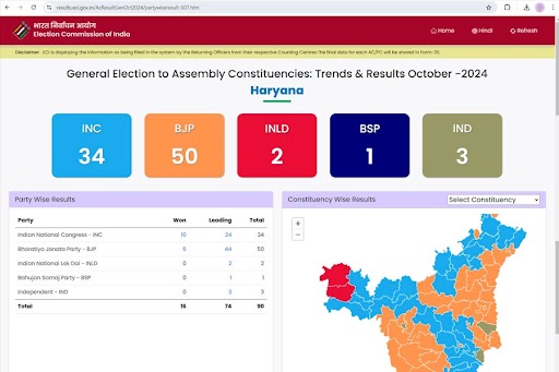 The Congress also raised with the Election Commission the issue of an "unexplained slowdown" in updating of results of Haryana elections on the poll watchdog's website and urged it to direct officials to update accurate figures so that "false news and malicious narratives" can be countered immediately.